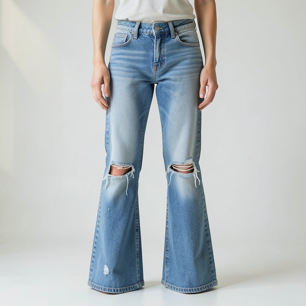 For those who like a bit of edge, distressed flares add a rebellious touch to your outfit. The rips and tears are artfully placed for maximum impact.