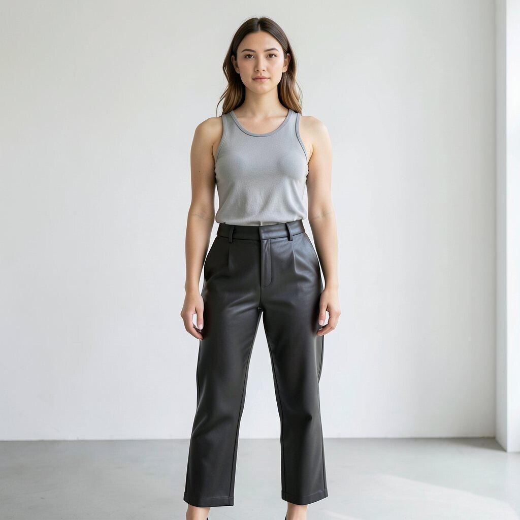 Embrace minimalism by pairing leather pants with a simple tank top. This is perfect for those who appreciate clean lines and understated style. The simplicity of the tank highlights the sleekness of the leather.
