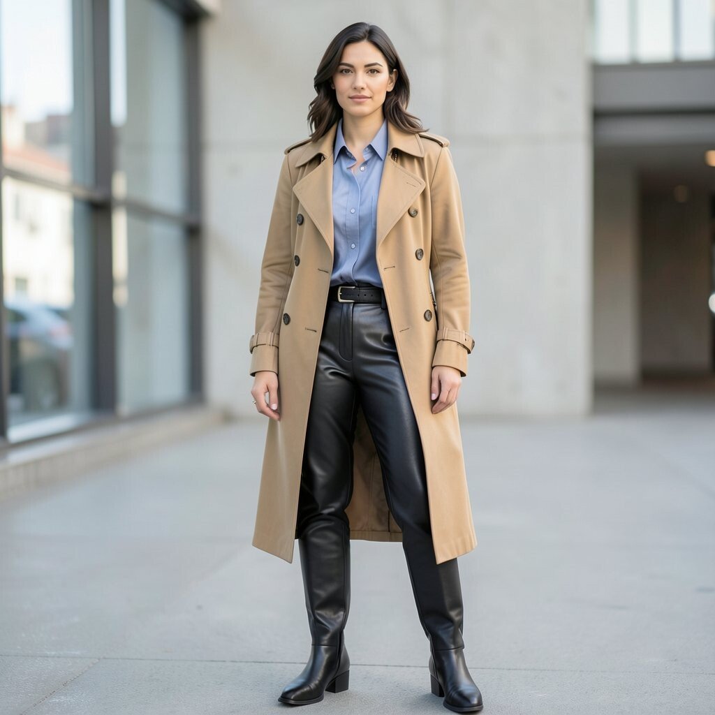 For a sophisticated look, layer your leather pants with a classic trench coat. This combo is perfect for transitional weather and adds an air of elegance to your outfit. It’s a go-to for when you want to impress effortlessly.