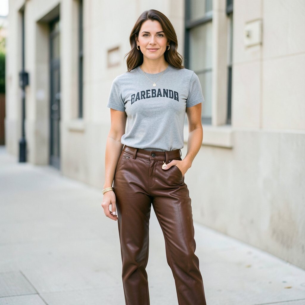 Express your personality by wearing leather pants with a fun graphic tee. This is perfect for those who love to showcase their interests or a bit of humor. It’s a relaxed outfit that still packs a punch in style.
