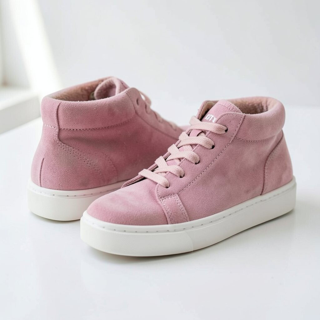Lavender suede sneakers add a touch of whimsy to your footwear collection. Their soft color is both calming and stylish.