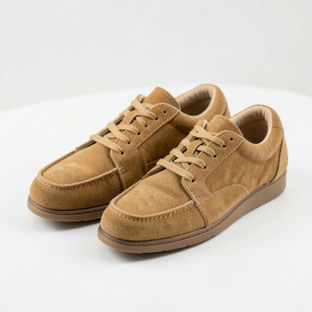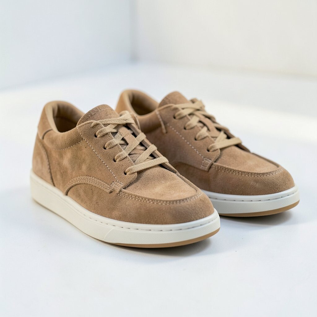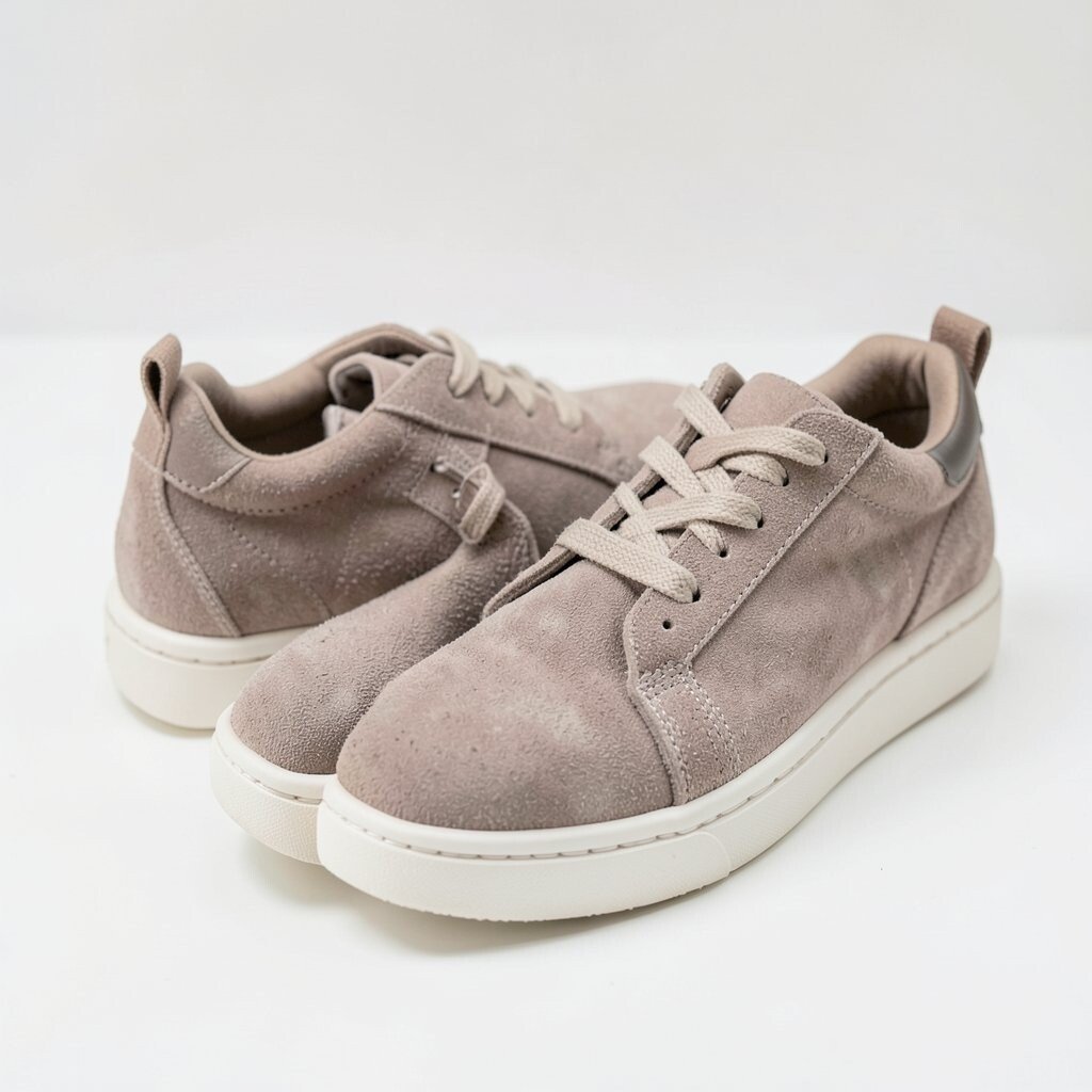 Sand suede sneakers offer a light, airy feel with their neutral tone. They are perfect for a minimalist look.