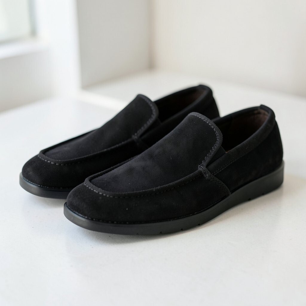 Black suede slip-ons are stylish and convenient. They offer a sleek look without the hassle of laces.