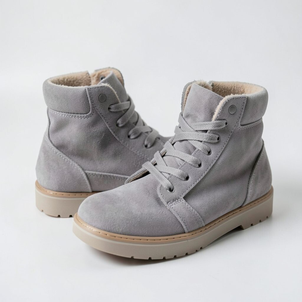 Gray suede high-tops offer a modern twist to the classic sneaker design. Their high ankle design provides extra support and style.