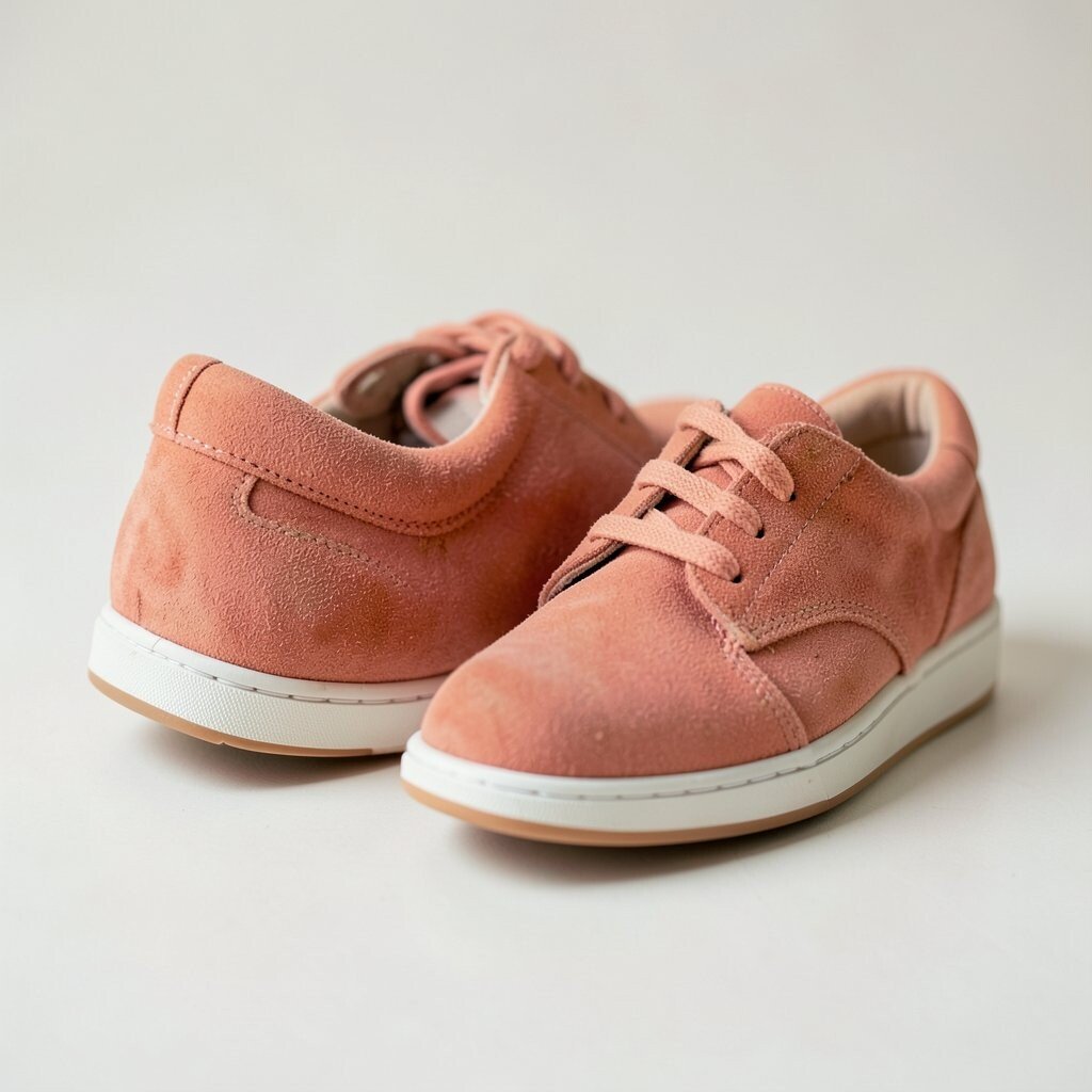 Coral suede sneakers add a vibrant splash to your footwear selection. Their bright color is perfect for summer.