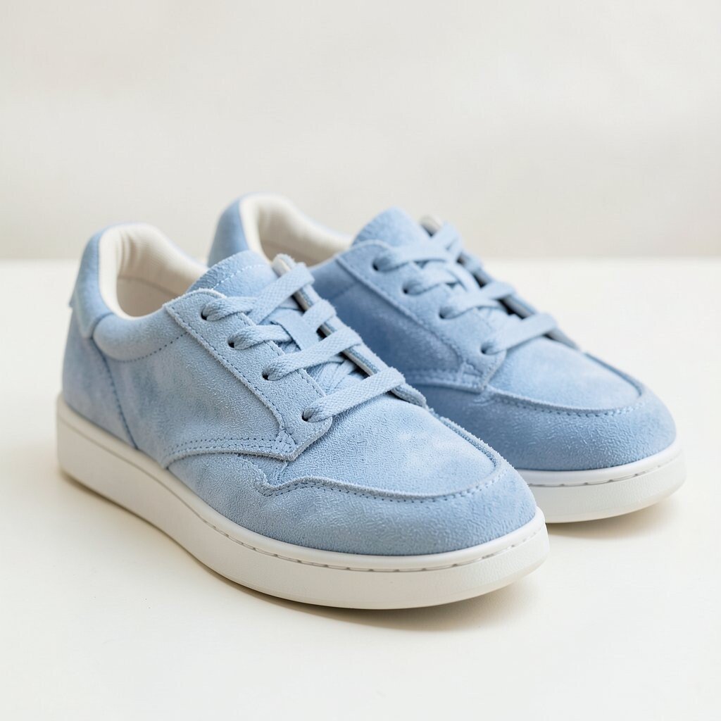 Light blue suede sneakers offer a refreshing take on classic sneaker designs. Their airy color is ideal for spring and summer.