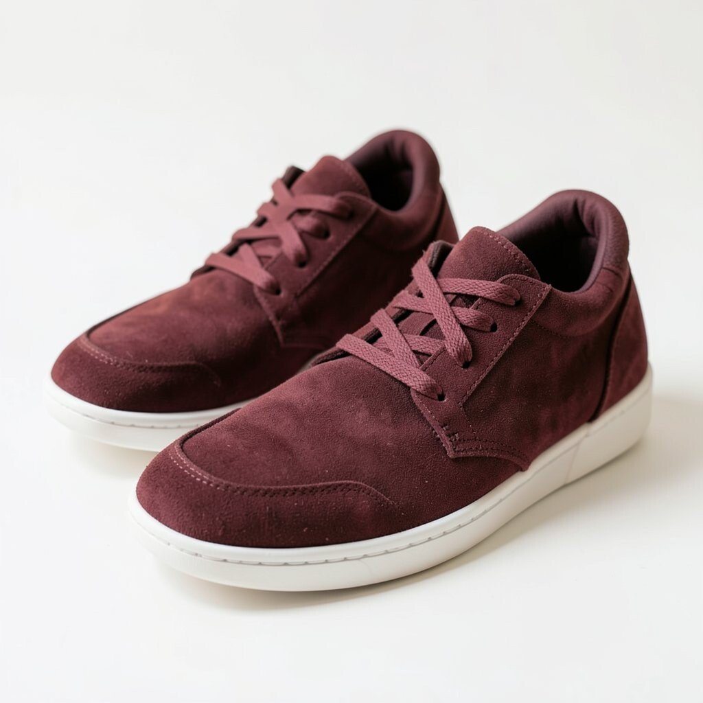 Burgundy suede sneakers add a touch of luxury to your shoe collection. Their rich color is perfect for fall and winter.