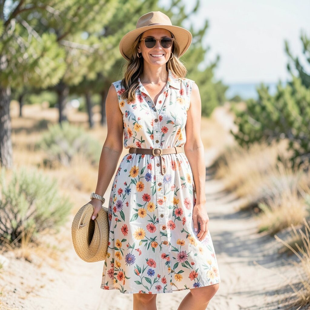 This outfit is perfect for sightseeing or a casual date. Choose a dress with a fun pattern or a solid color for a more classic look. Button-up dresses are available in various lengths and styles, so you can find one that suits you.