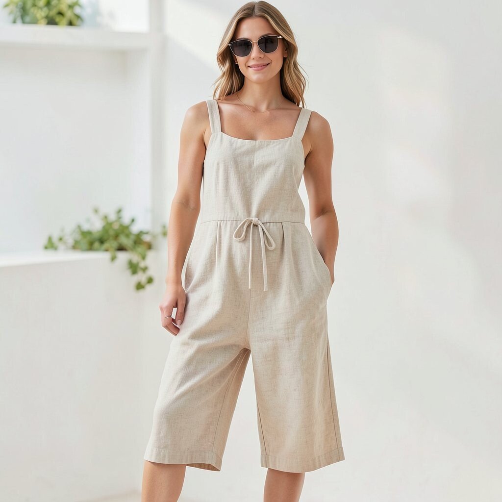 Linen jumpsuits are the epitome of summer comfort. The fabric is breathable and perfect for warm weather.