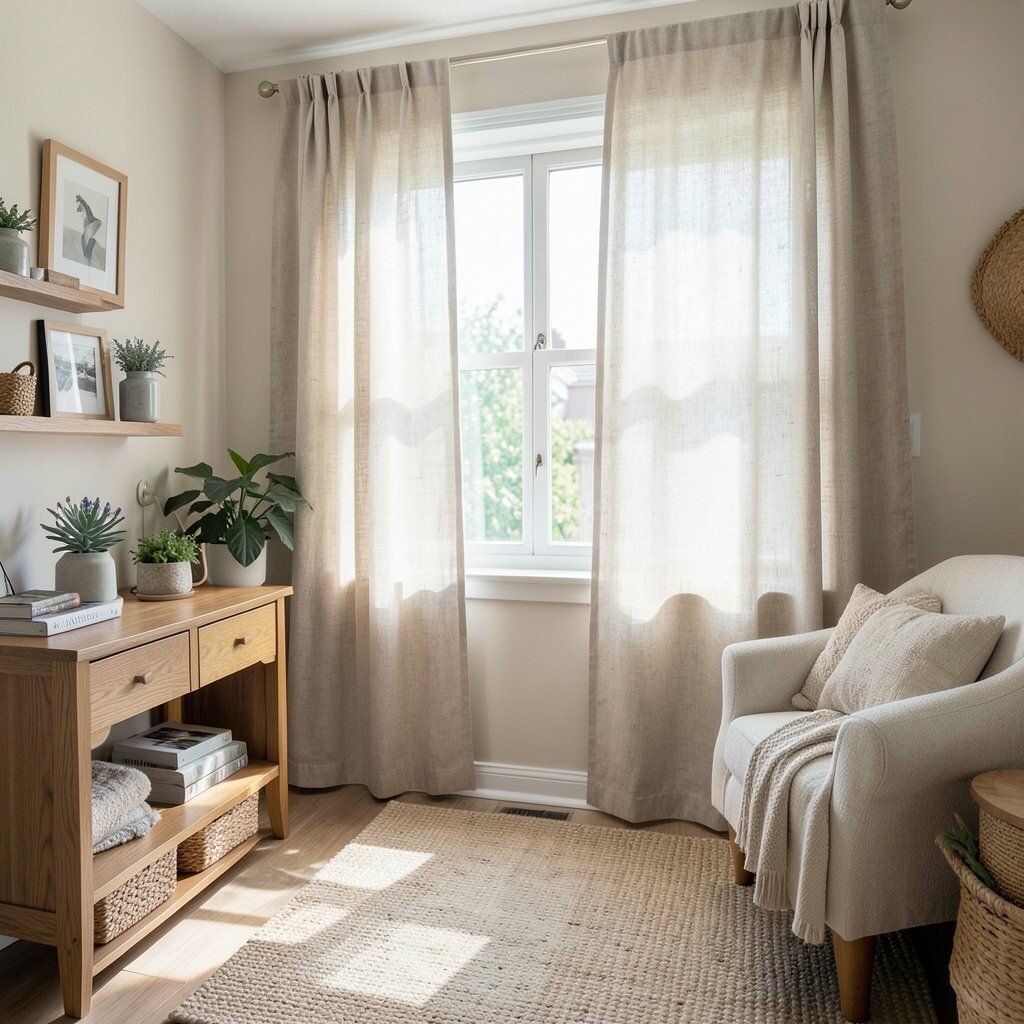 Natural linen lets in gentle light and pairs well with wood, clay, and woven decor. It also lasts a long time when cared for well, which makes it a smart buy. Many people like the relaxed, rumpled look because it feels calm and lived in.