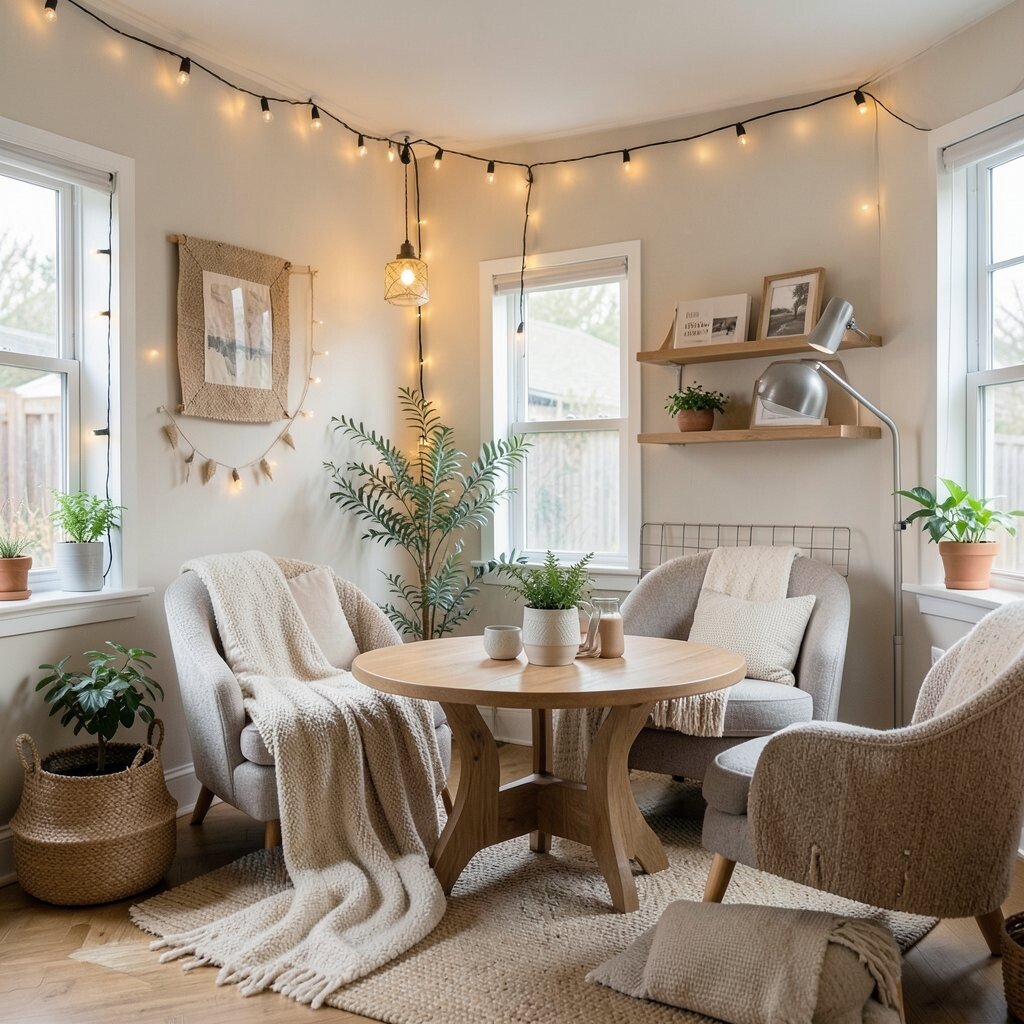 Energy-efficient string lights can make a tiny apartment feel warm at night. Their soft glow adds mood without needing a lot of power.