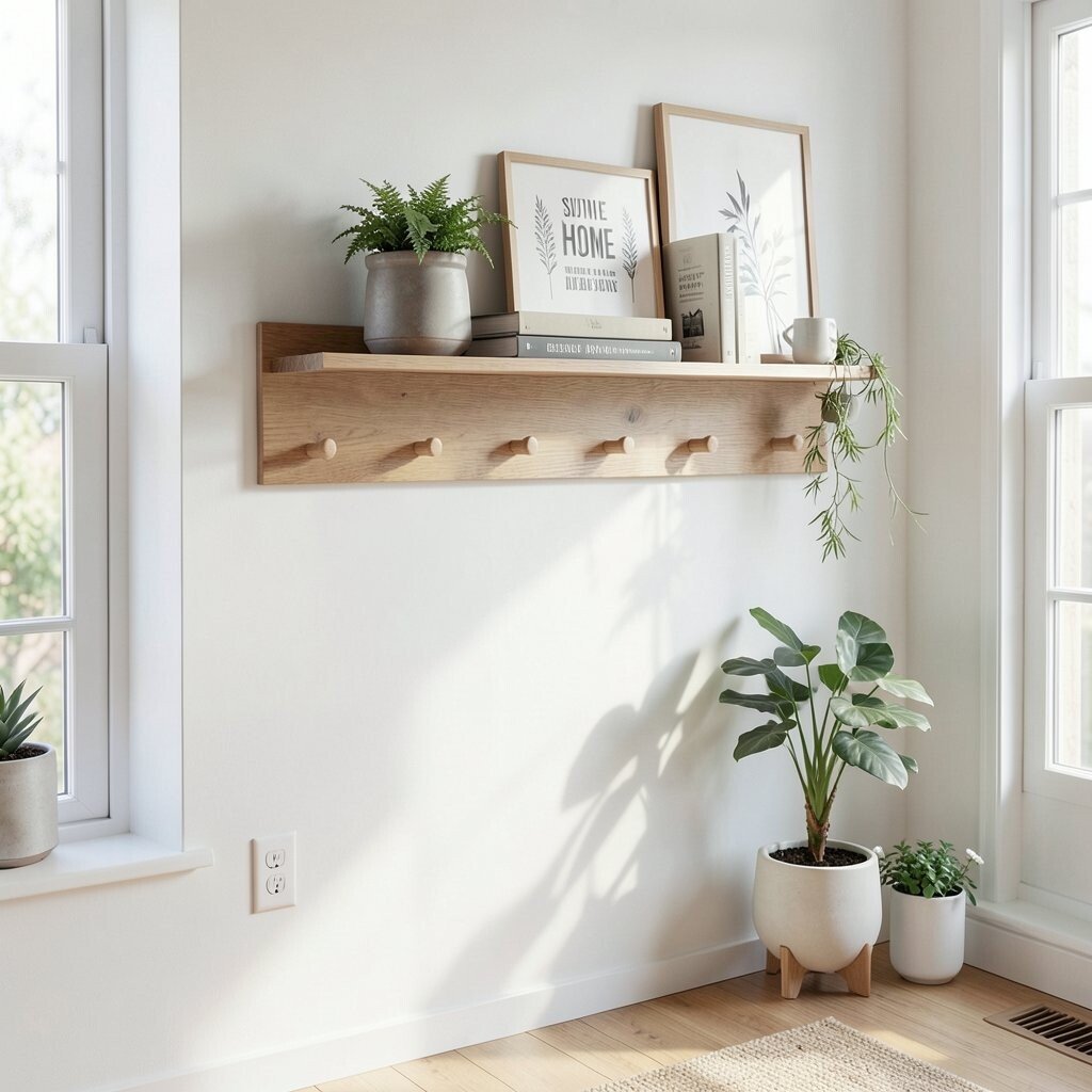 Wood peg rails are easy to make from leftover boards, which is great for a low-waste home. They work well in entryways, kitchens, and even bedrooms. You can paint the pegs to match the wall or leave them natural for warmth.