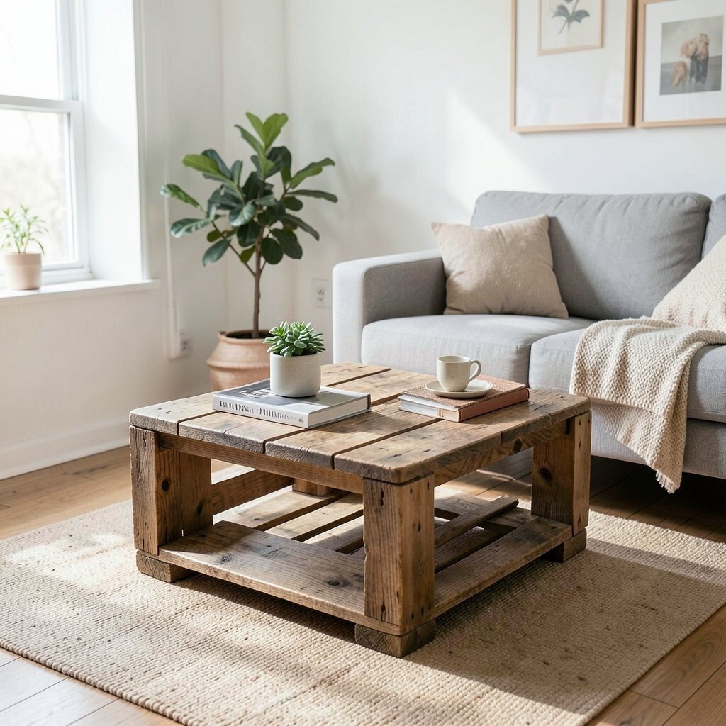 A repurposed crate coffee table can bring rustic style into a tiny apartment. It offers a place for books, snacks, or a plant while still feeling open and light.