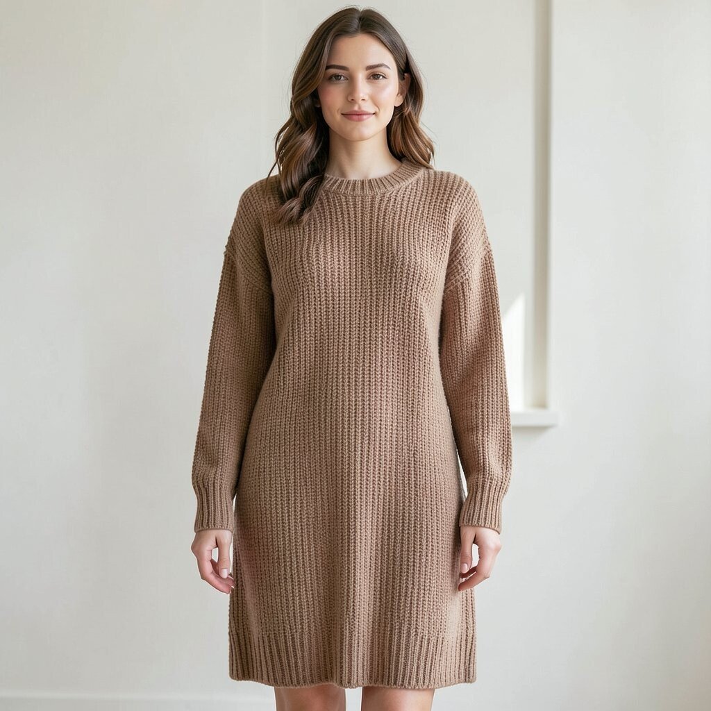 The ribbed texture adds dimension to a sweater dress. It’s a versatile option that flatters various body types.
