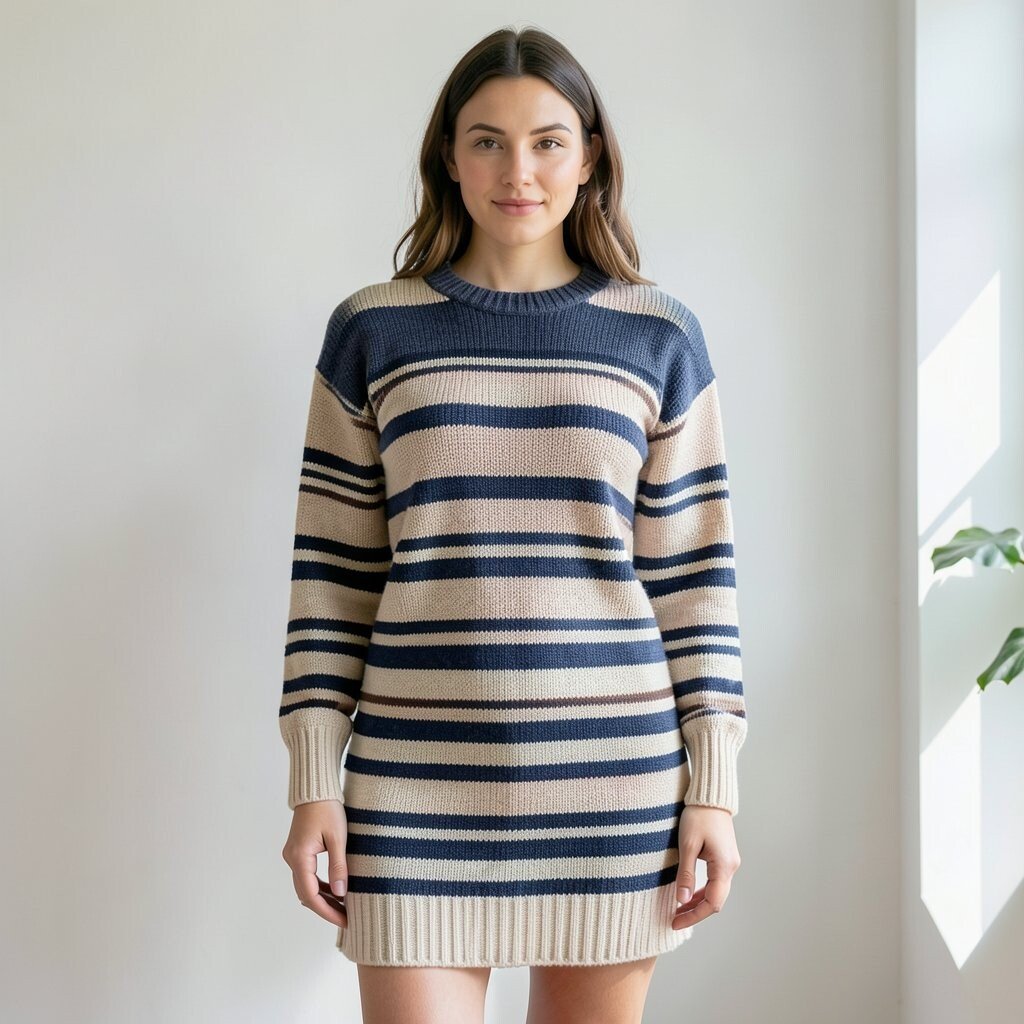 Stripes add a fun element to a sweater dress. This pattern is a classic that never goes out of style.