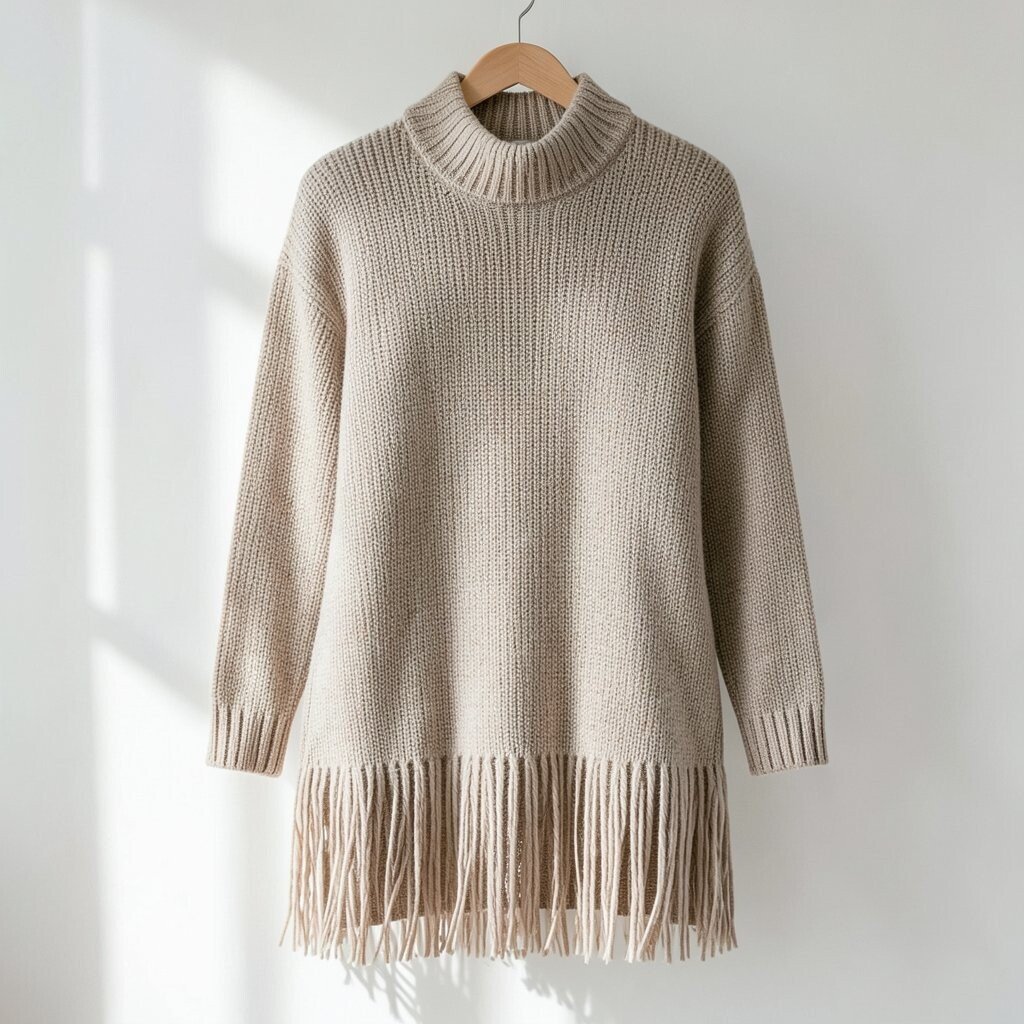 Fringe adds a touch of boho-chic to a sweater dress. It creates movement and adds a playful vibe.