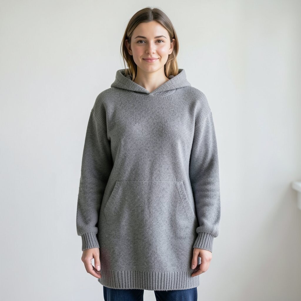 The hooded sweater dress is a blend of sportswear and chic style. It’s perfect for those laid-back days when comfort is key.