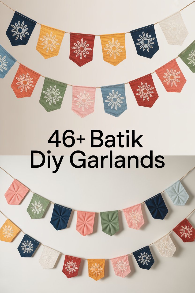 47 Batik DIY Garlands bring a vibrant touch to your home decor, inviting you to add a personal flair to your space with colorful designs that are easy and fun to create.