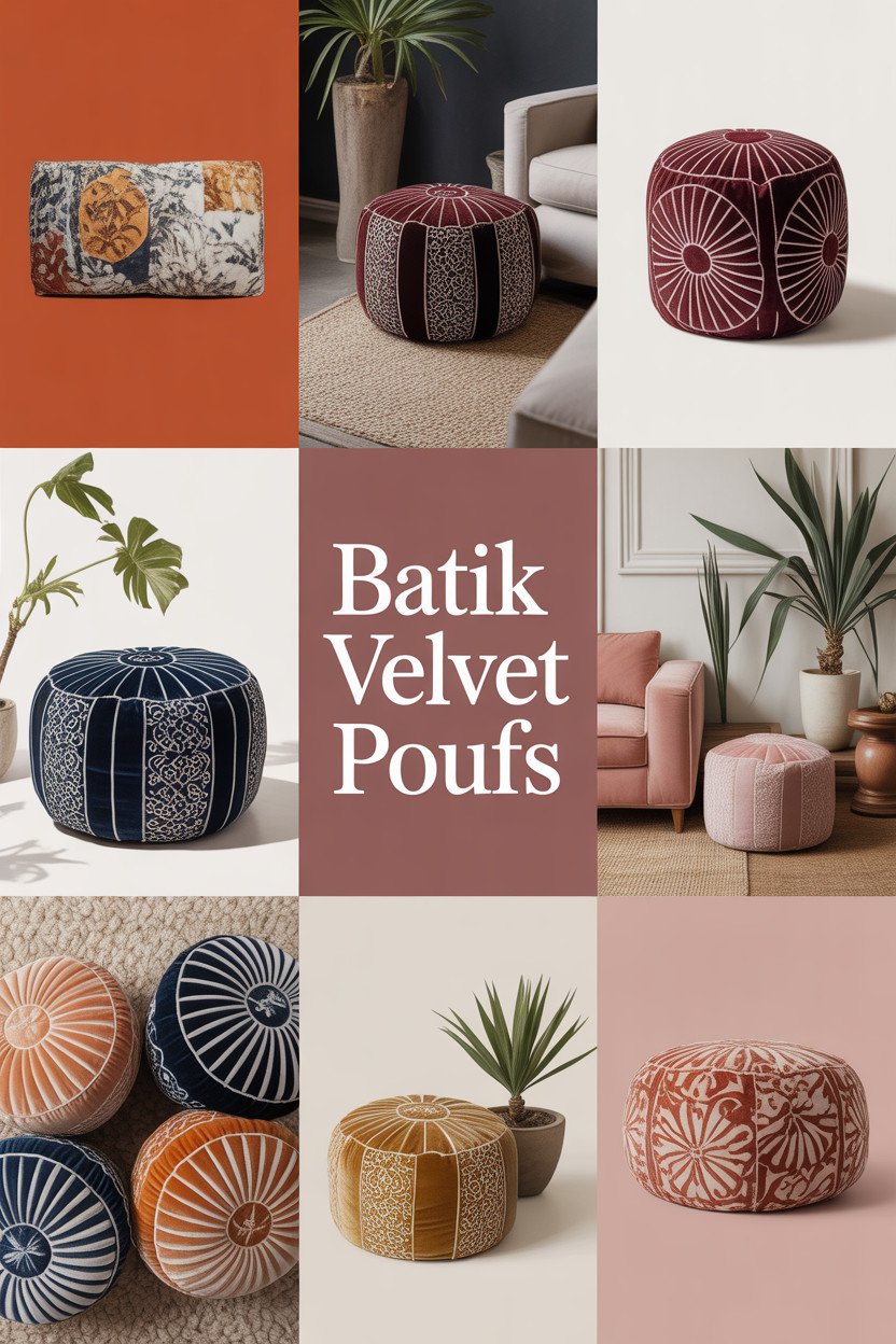 Unleash the beauty of your home by incorporating batik velvet poufs that not only add a touch of vibrant artistry but also invite comfort and style, making every gathering a cherished memory.