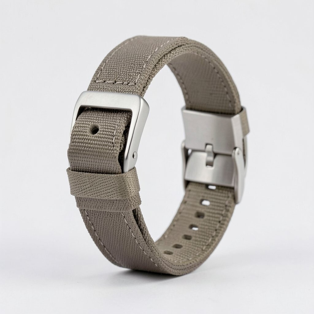 A titanium and nylon strap offers a casual, laid-back style. The nylon adds comfort, while titanium ensures durability.