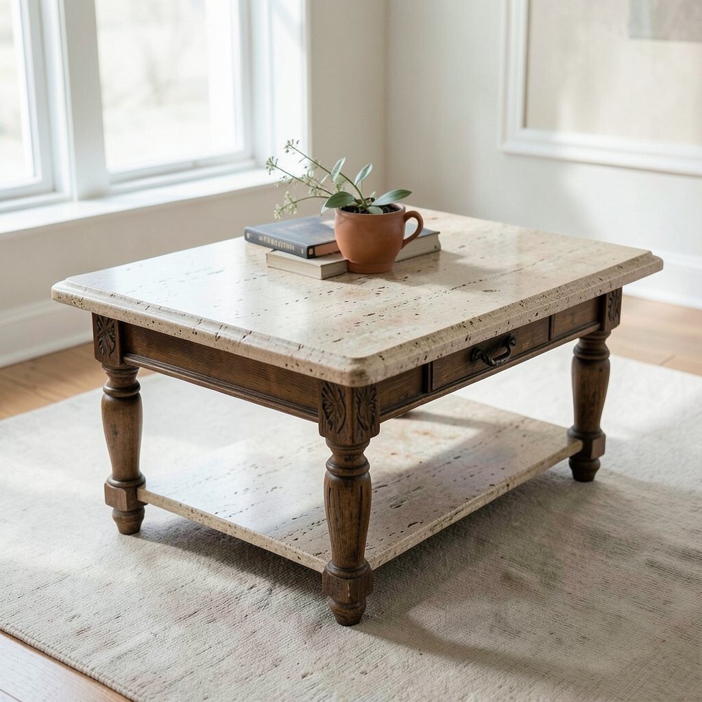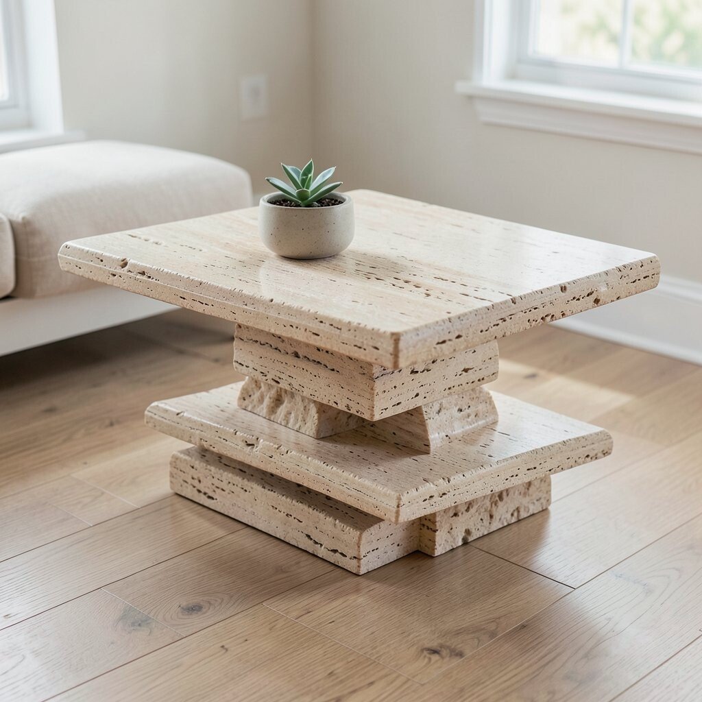 Travertine tables with multifunctional designs are practical and stylish. They often feature hidden storage or convertible tops.