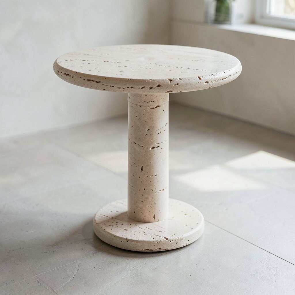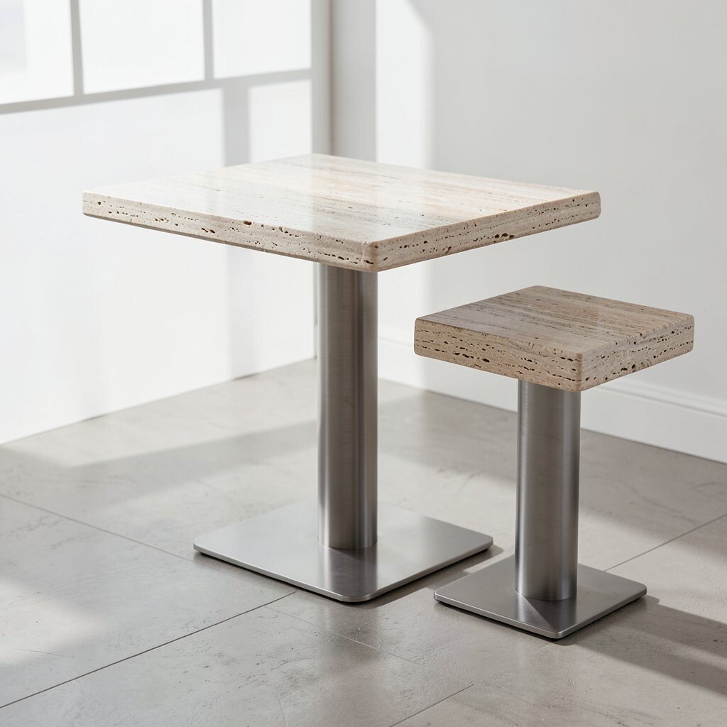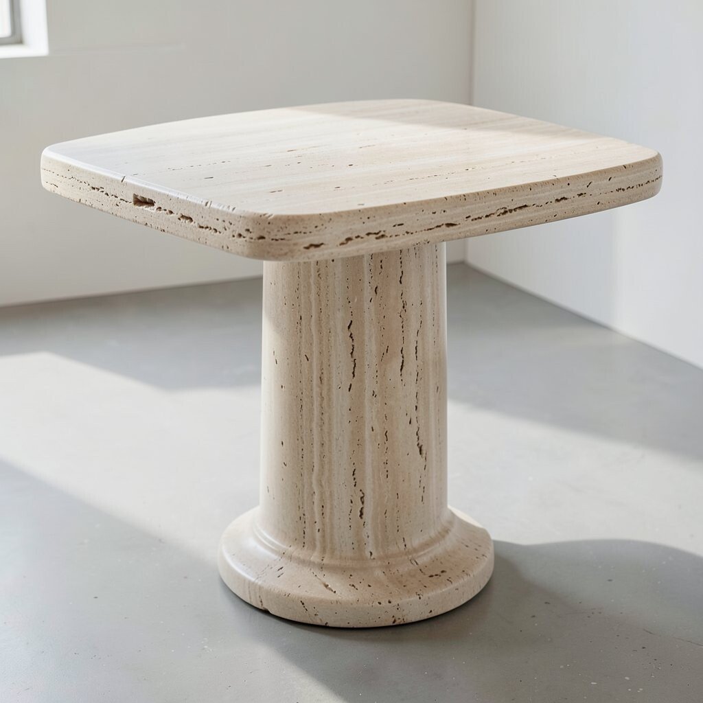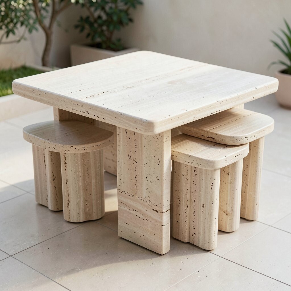 A compact travertine bistro table is ideal for small spaces. It’s perfect for a cozy breakfast nook or balcony.