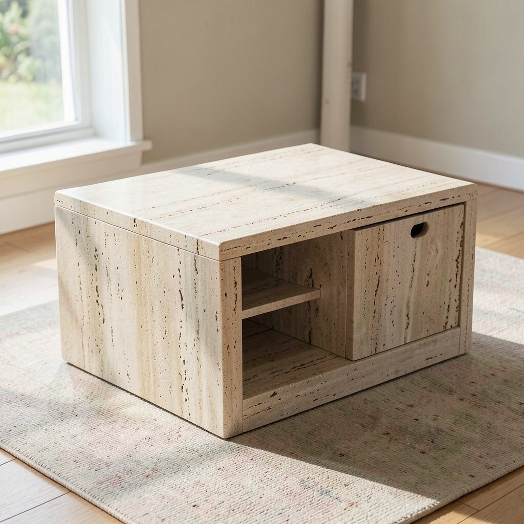 A travertine coffee table with storage is both beautiful and practical. It helps keep your living area tidy and organized.