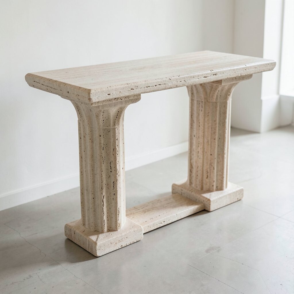 An elegant travertine console table suits any entryway or hallway. Its understated beauty offers a welcoming introduction to your home.