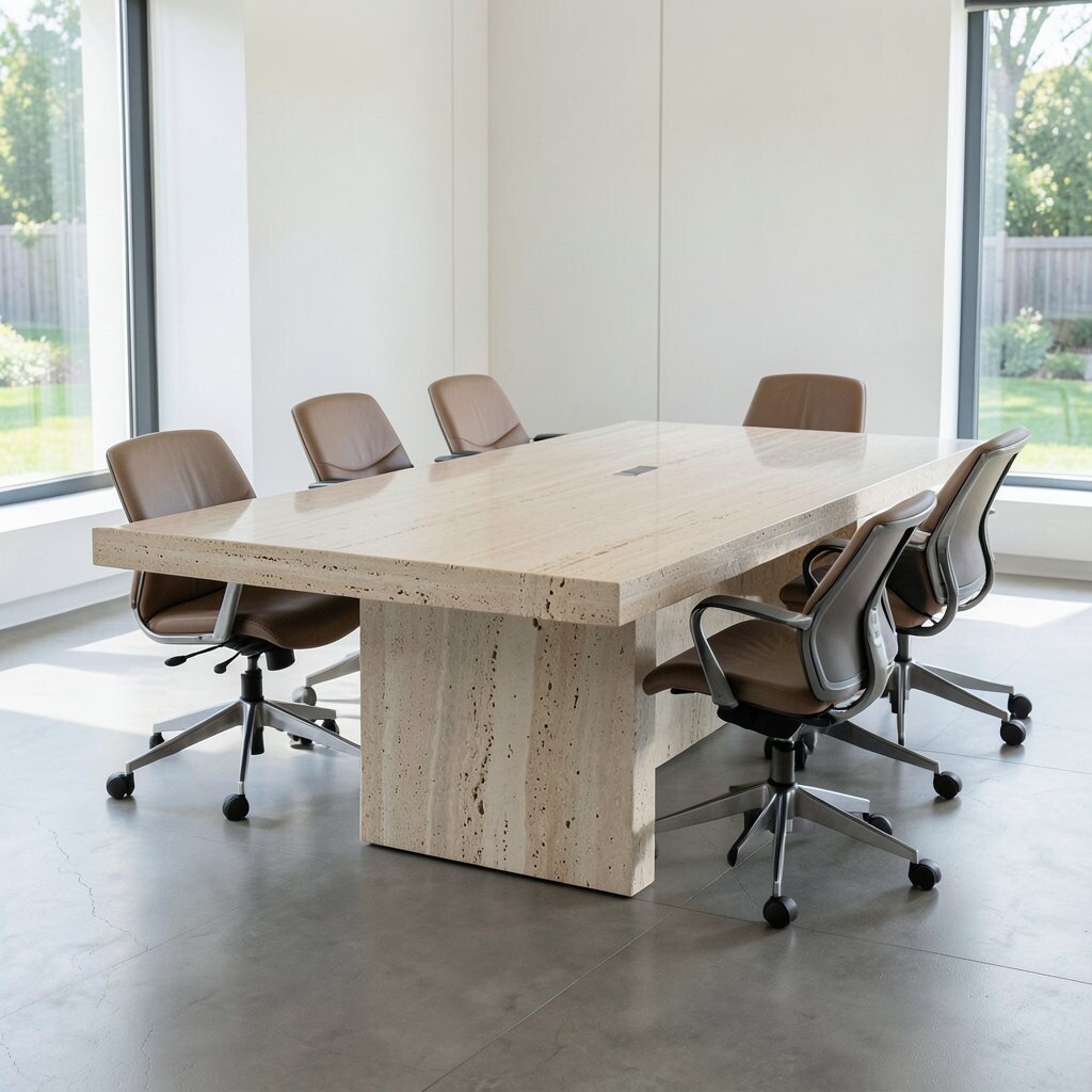 The large travertine conference table is a bold choice for your home office. It combines professionalism with natural beauty.