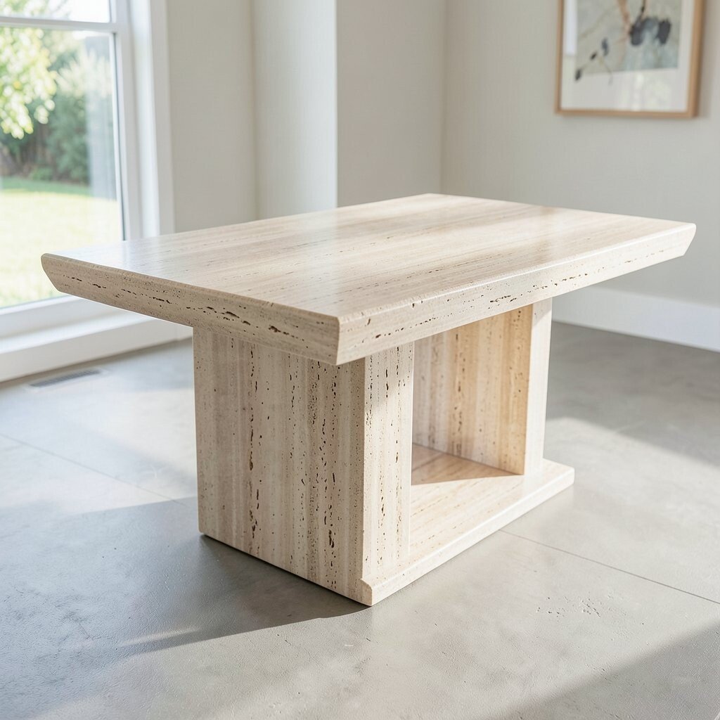 A sleek, minimalist travertine coffee table can be the centerpiece of your living room. Its clean lines and smooth surface create a modern vibe.