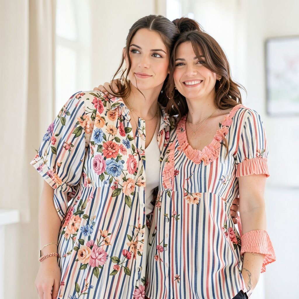 Floral patterns add a touch of nature and femininity, while stripes bring structure and modernity. Combine them in your wardrobe for a fresh, trendy look. Don’t be afraid to play with colors and sizes.