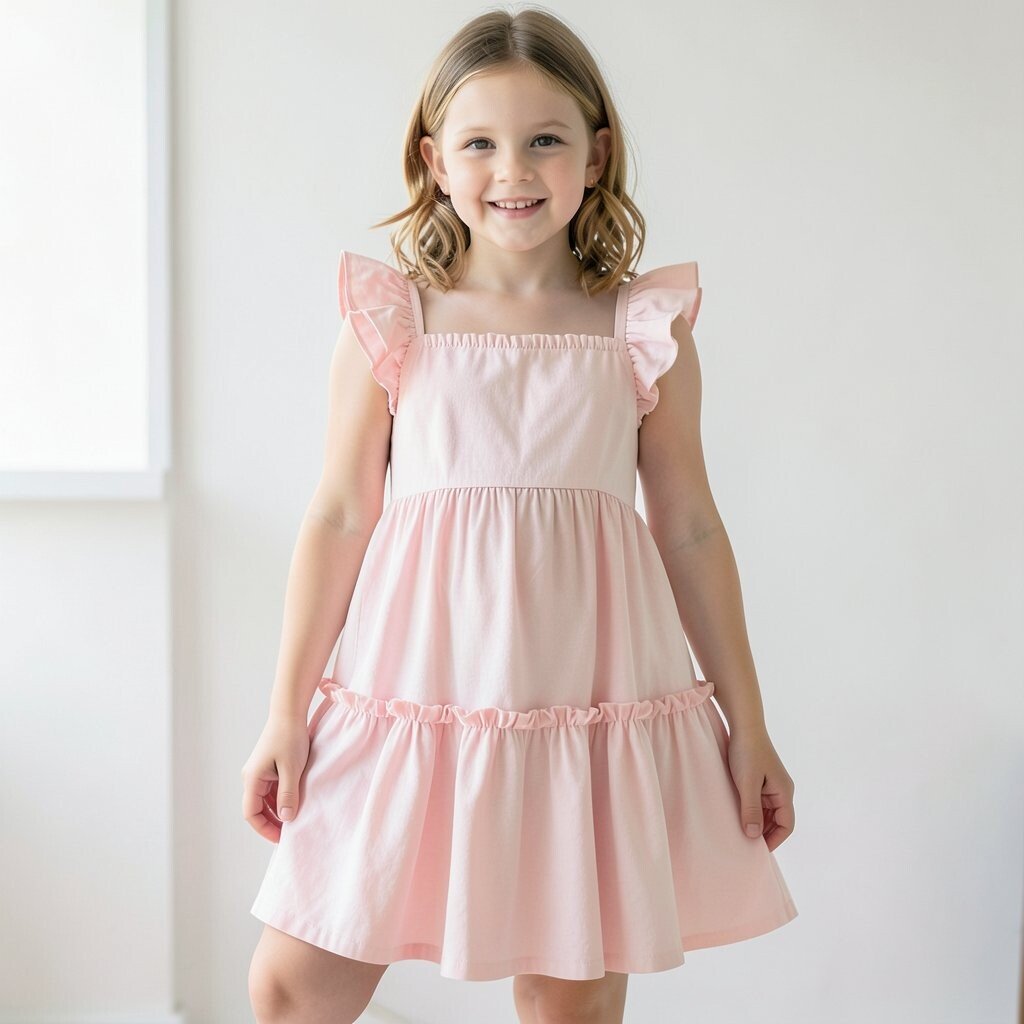 The ruffles add movement and interest to the dress. Choose soft pastel colors for a dreamy appearance.