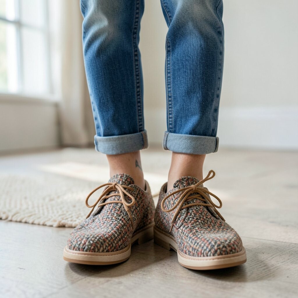Tweed shoes can make a simple outfit look special right away. They add texture at ground level, which gives the whole look a thoughtful finish.