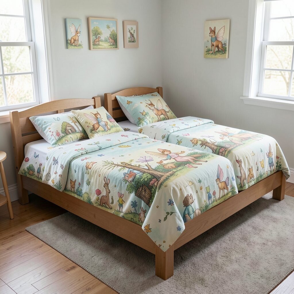 Create a fairy tale atmosphere with a twin floor bed that looks like it belongs in a storybook. Use canopies and pastel colors to enhance the magical feel.