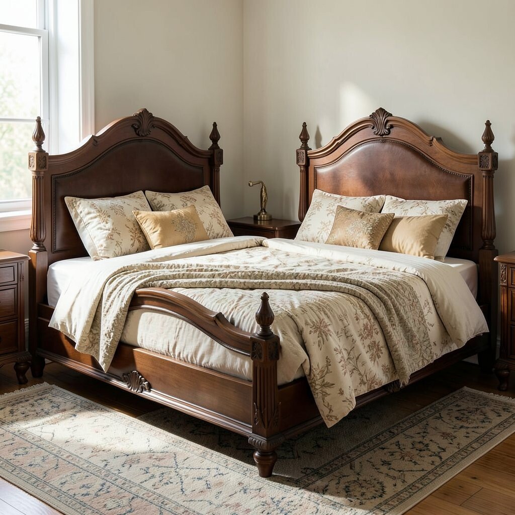 Antique-style furniture can complement the bed beautifully. This setup is perfect for those who love nostalgia and elegance.