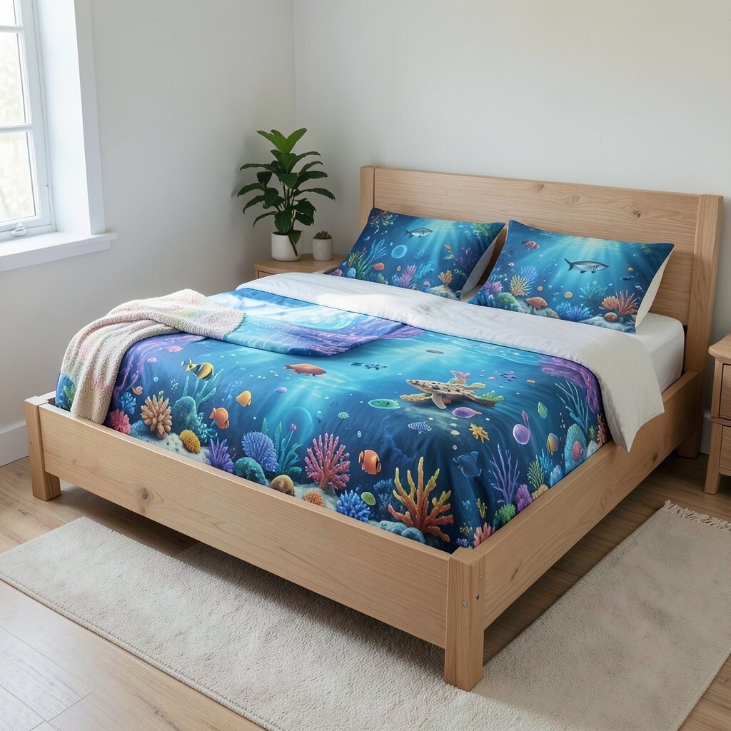 Incorporate sea creature pillows and wave patterns for added fun. It’s perfect for ocean enthusiasts and dreamers.