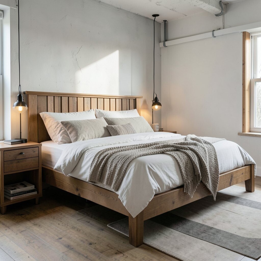 Pair with checkered patterns and earth-toned bedding. This setup is great for those who appreciate simplicity and warmth.