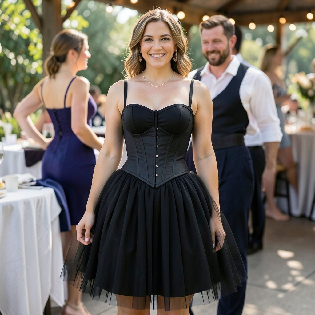 Nothing says elegance like a classic black corset paired with a voluminous tulle skirt. This outfit is perfect for making a statement without overdoing it. The contrast between the tight-fitting corset and the flowing skirt creates a beautiful silhouette.