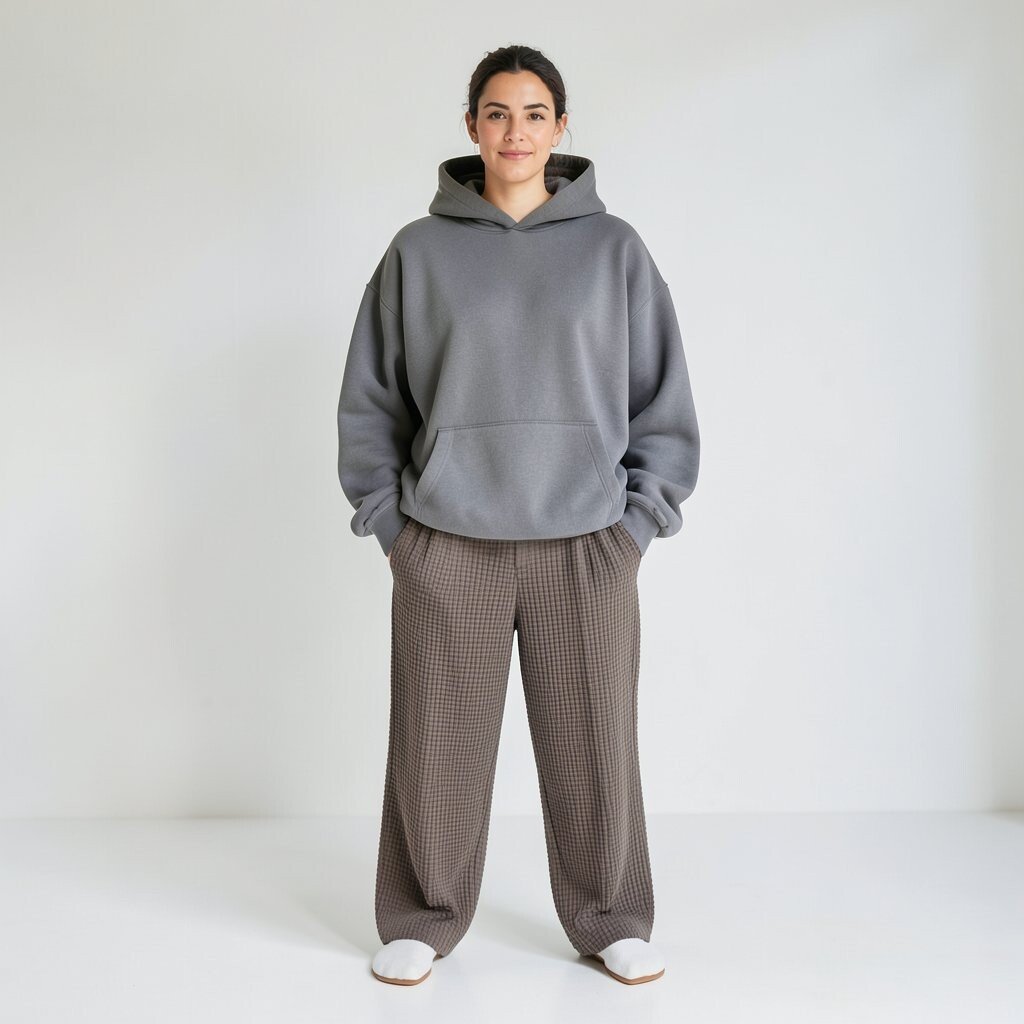 An oversized hoodie paired with waffle pants is the ultimate comfort combo. It’s like wearing your favorite blanket but in outfit form.