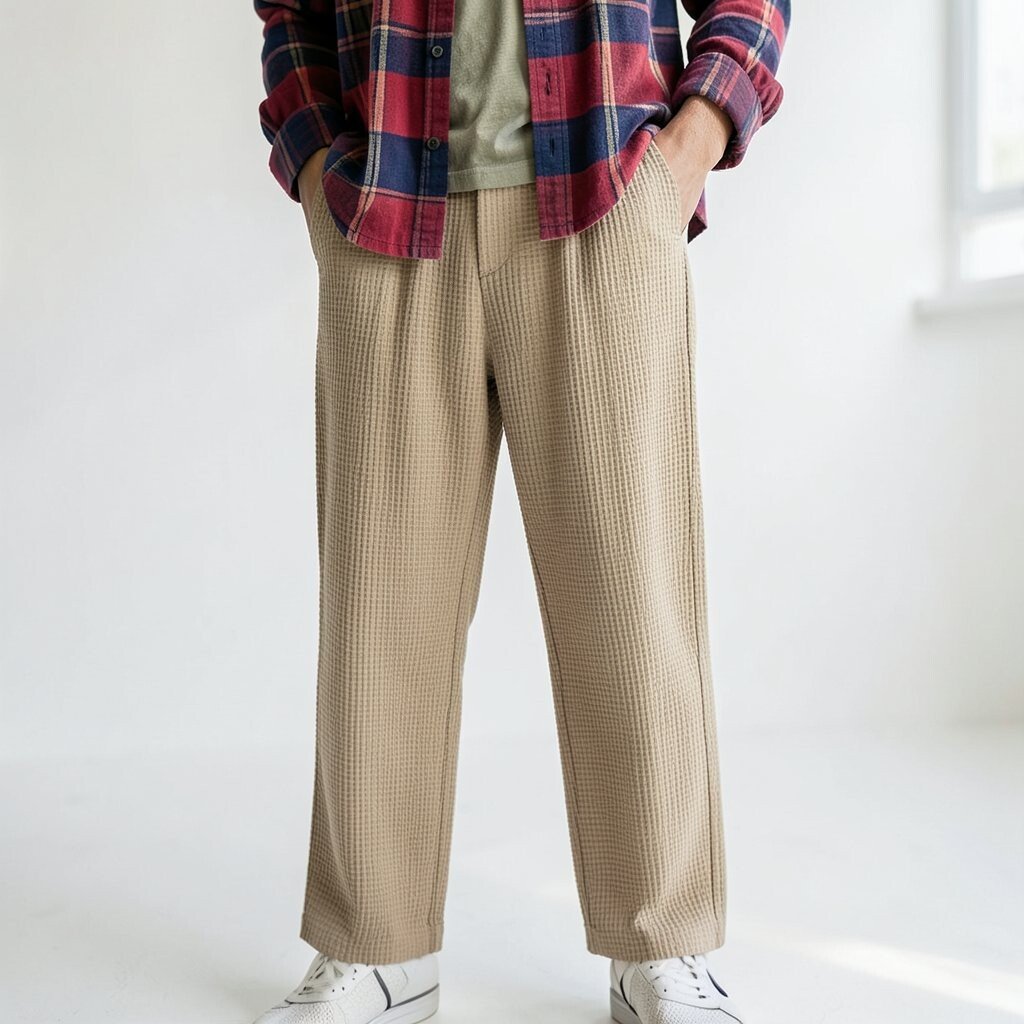 Patterned waffle pants are a unique twist to the classic style. They add visual interest and can be a conversation starter.
