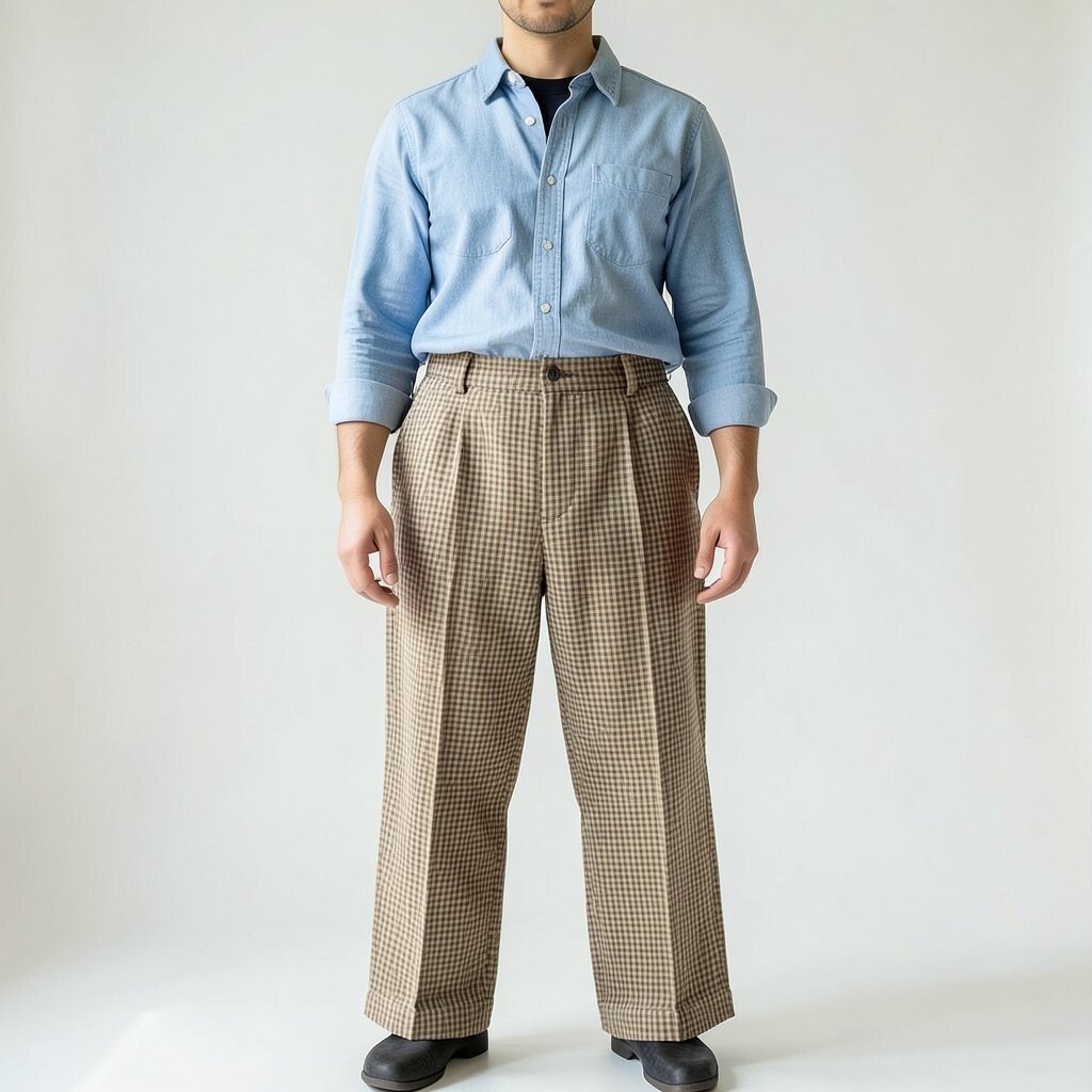 Choose a plaid pattern that complements your pants for a harmonious look. Layer the shirt over a simple tee for added warmth.