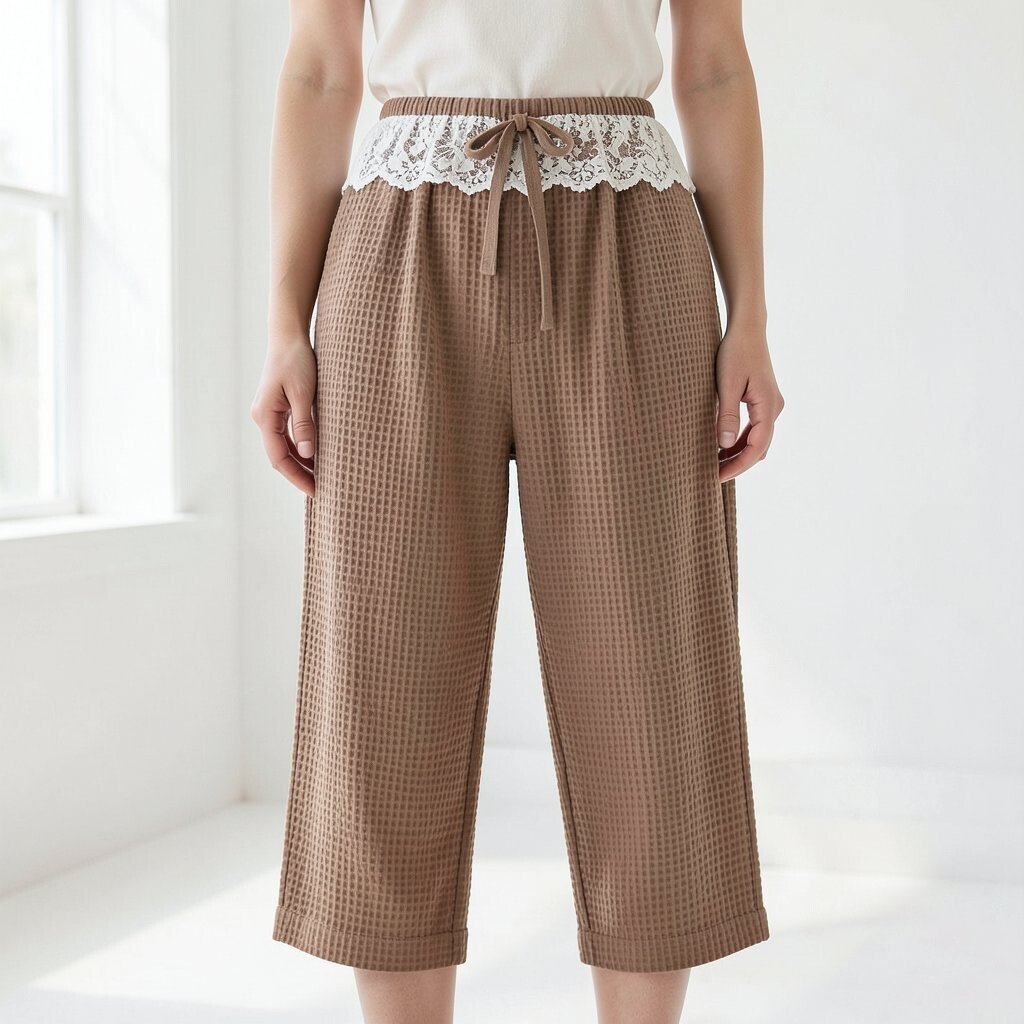 16. Waffle Pants with a Lace Top for a Feminine Touch
