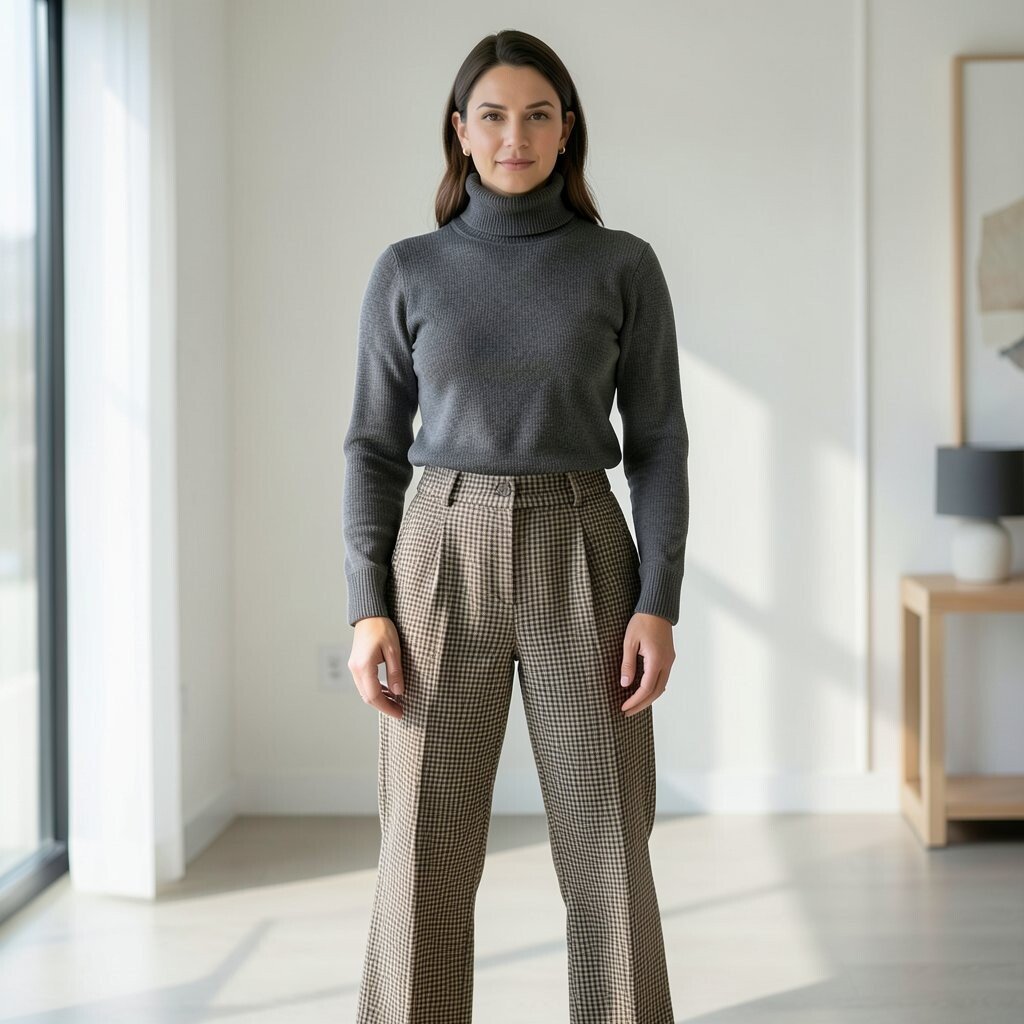 10. Waffle Pants and a Turtleneck for a Sophisticated Look