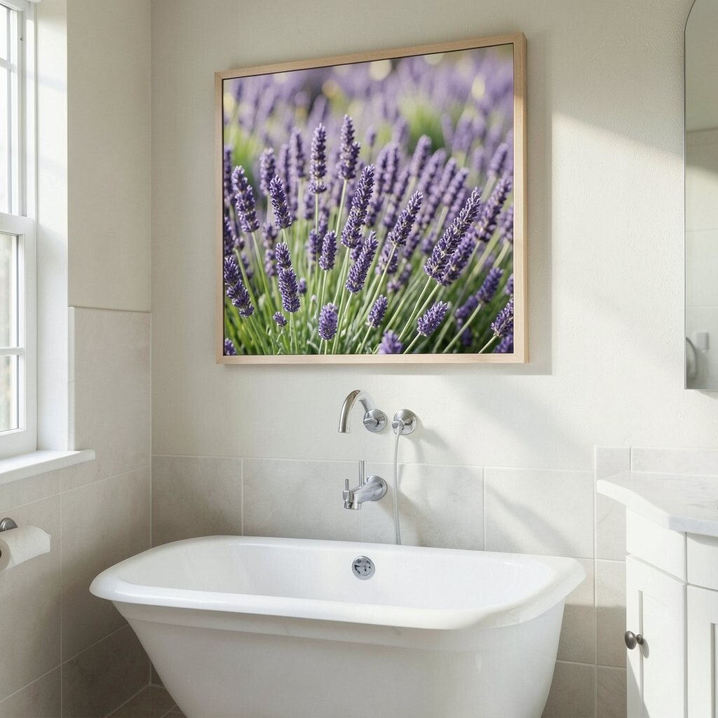 Infuse your bathroom with the calming scent of lavender fields. The vibrant purples and greens bring a fresh, floral touch to your decor.