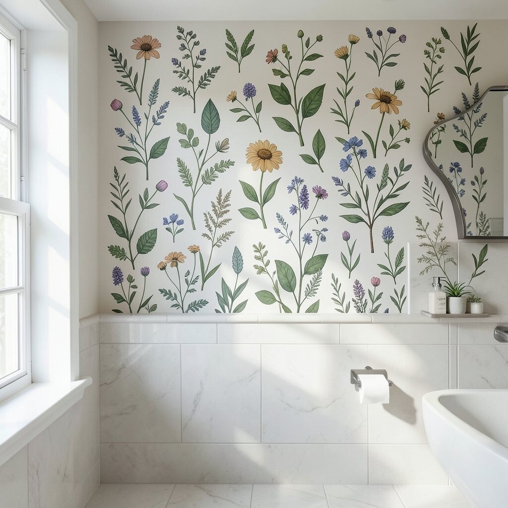 No need for a green thumb with botanical wall decals. These stickers are easy to apply and remove, transforming your bathroom into a lush garden. They’re perfect for renters or those who love to switch things up.