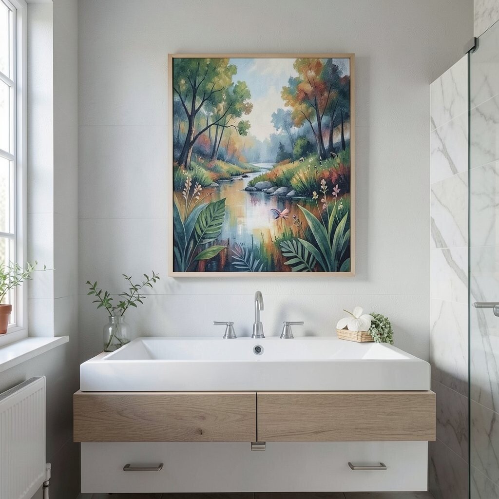 Imagine stepping into your bathroom and feeling as if you’ve entered a serene, natural oasis. Wall art can transport you to lush forests or tranquil beaches. Ready to create your own soothing retreat?