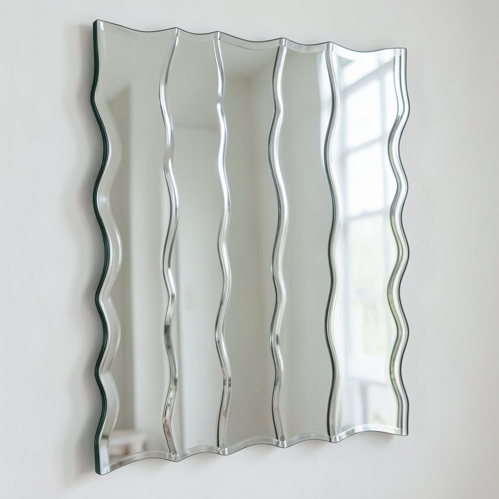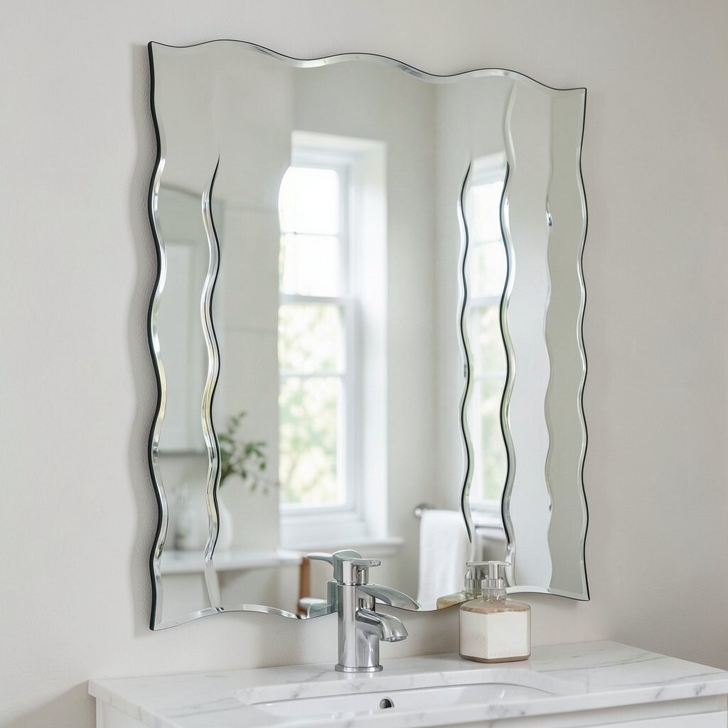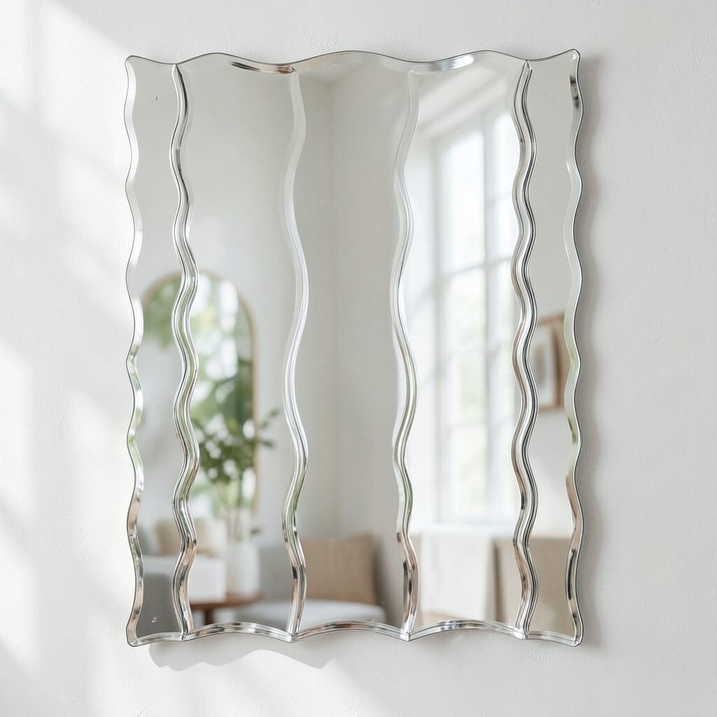 A frameless wavy mirror offers a sleek and modern appearance. Its minimalist design allows it to blend seamlessly into any decor.