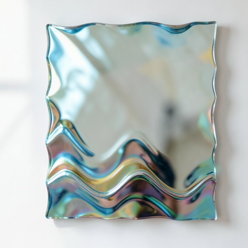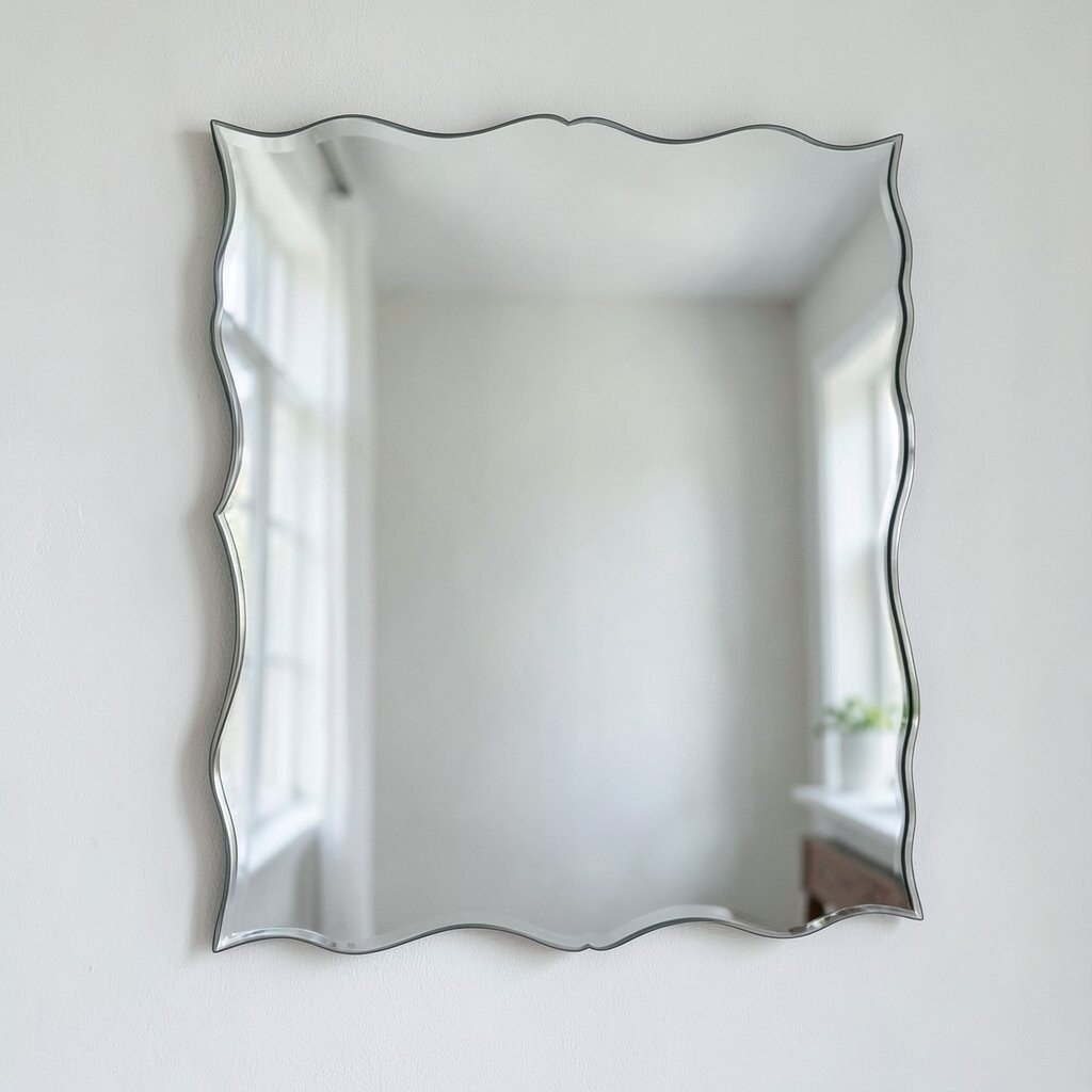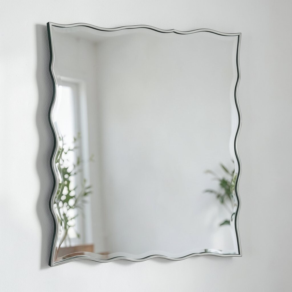 A frameless wavy mirror offers a sleek and modern appearance. Its minimalist design allows it to blend seamlessly into any decor.