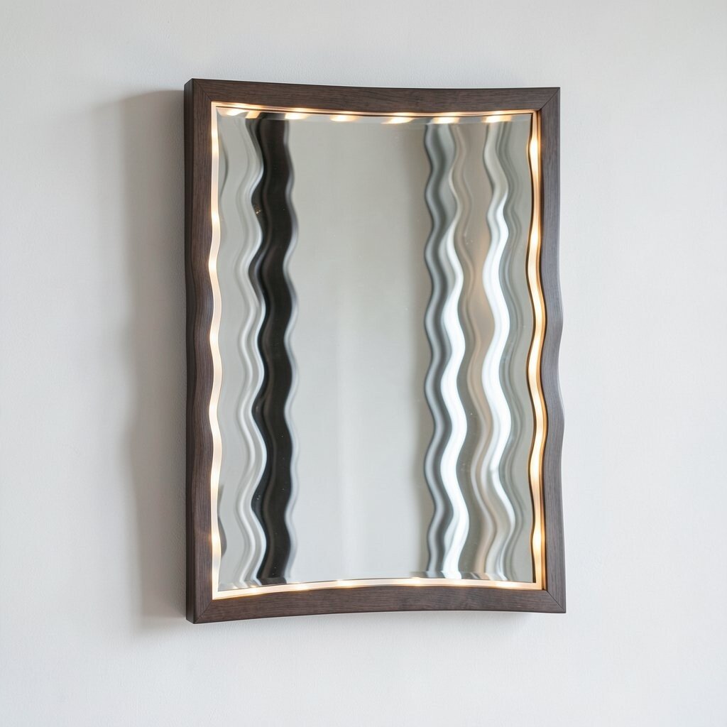 An LED backlit wavy mirror is both functional and stylish. It provides ample lighting for grooming while serving as a decorative piece.