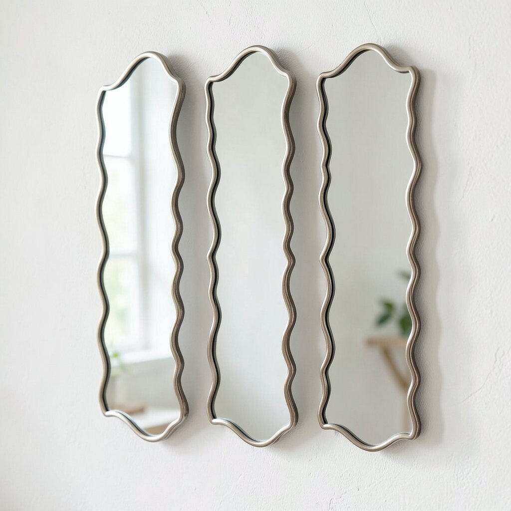 Multi-panel wavy mirrors create an interesting visual effect. They can cover a large wall area, reflecting light and expanding the space.